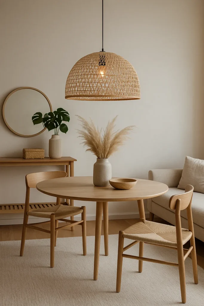 Veja aqui onde encontrar luminária de palha pendente ou luminária boho de palha natural, com design artesanal e formato suave, ideal para dar aquele toque boho-calmo em salas de estar ou acima de mesas de jantar. Perfeita para ambientes refinados, com luz quente e natural.